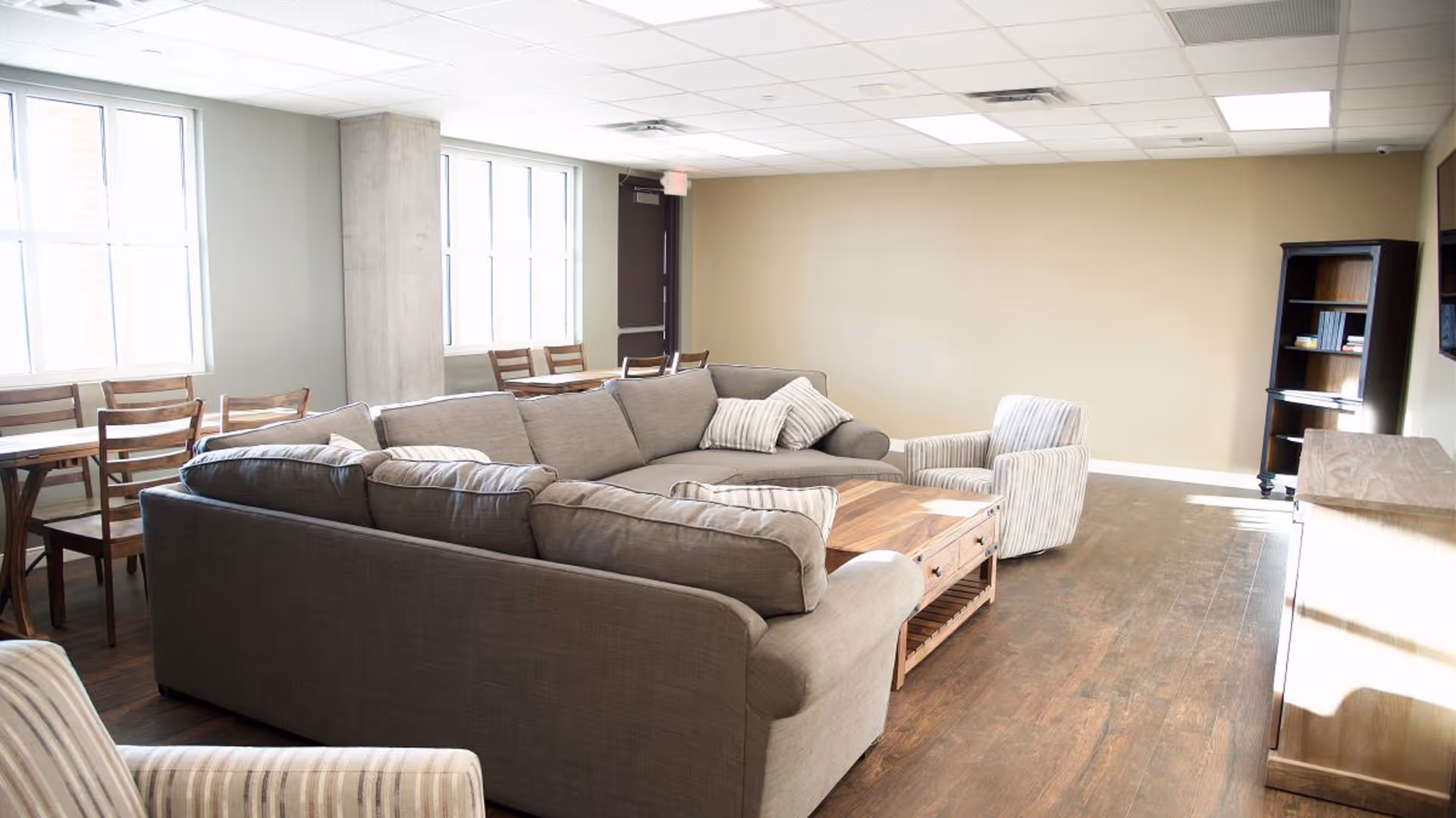 The 24-hour club provides shelter and housing for recovering alcoholics and drug addicts. They offer recovery meetings, 12-step fellowships to assist others. They provide a positive environment for those who want to recover or want to support." We partnered with KDC, Beck Group, Balfour Beatty, Austin Commercial, to provide a facility suitable for those in need. We worked with Sherwin-Williams to get material at no cost and donated the management and labor.