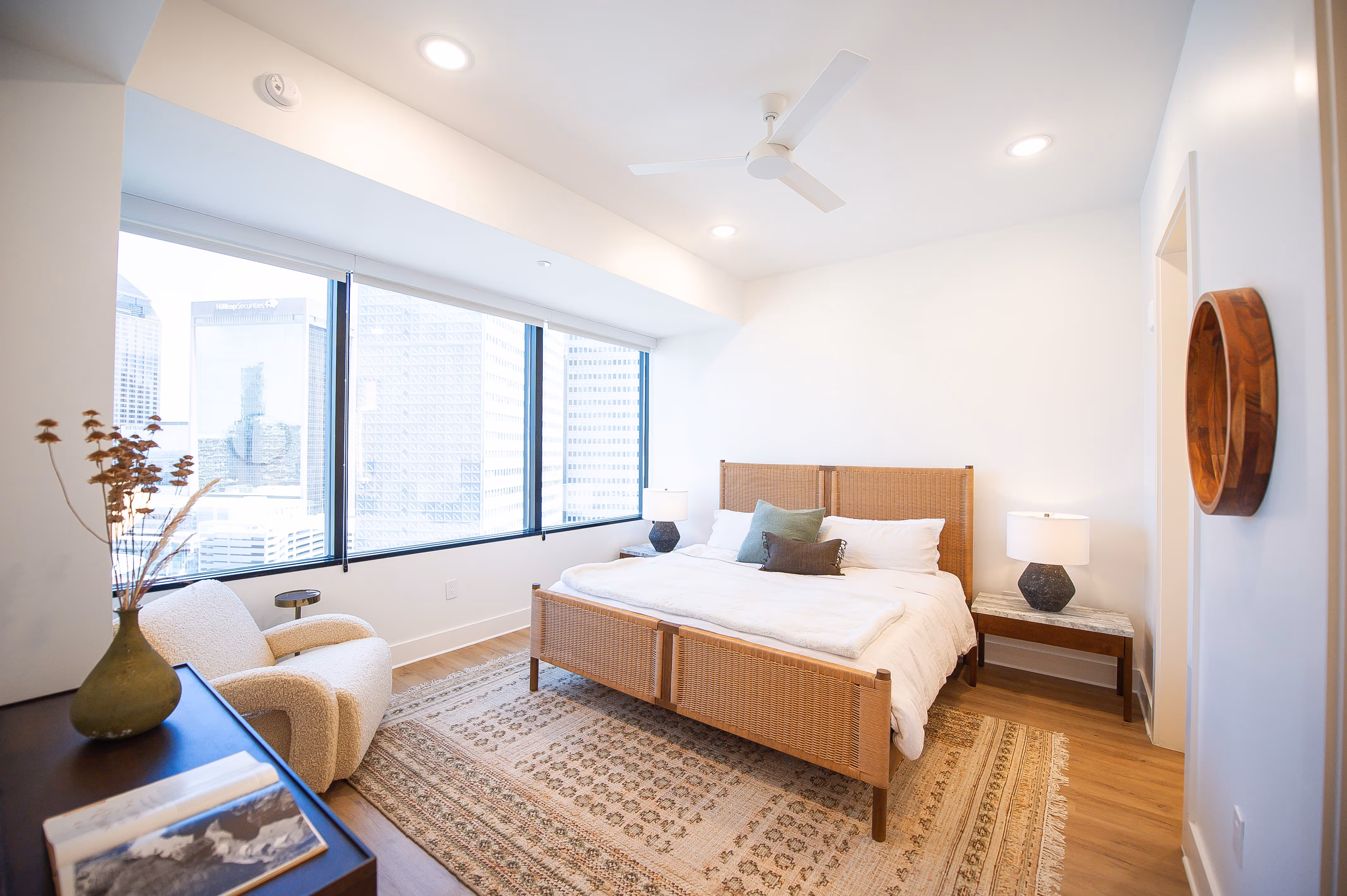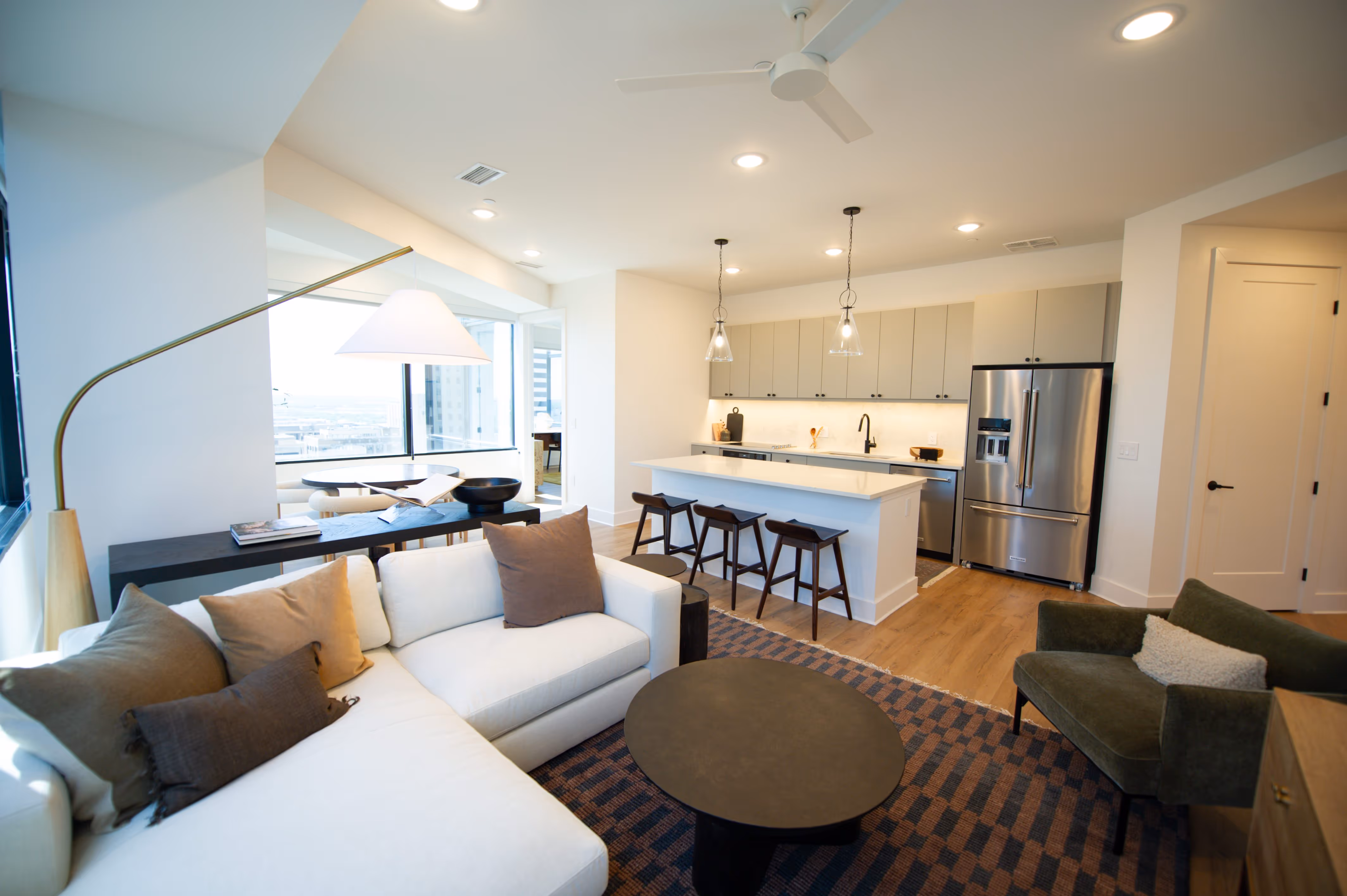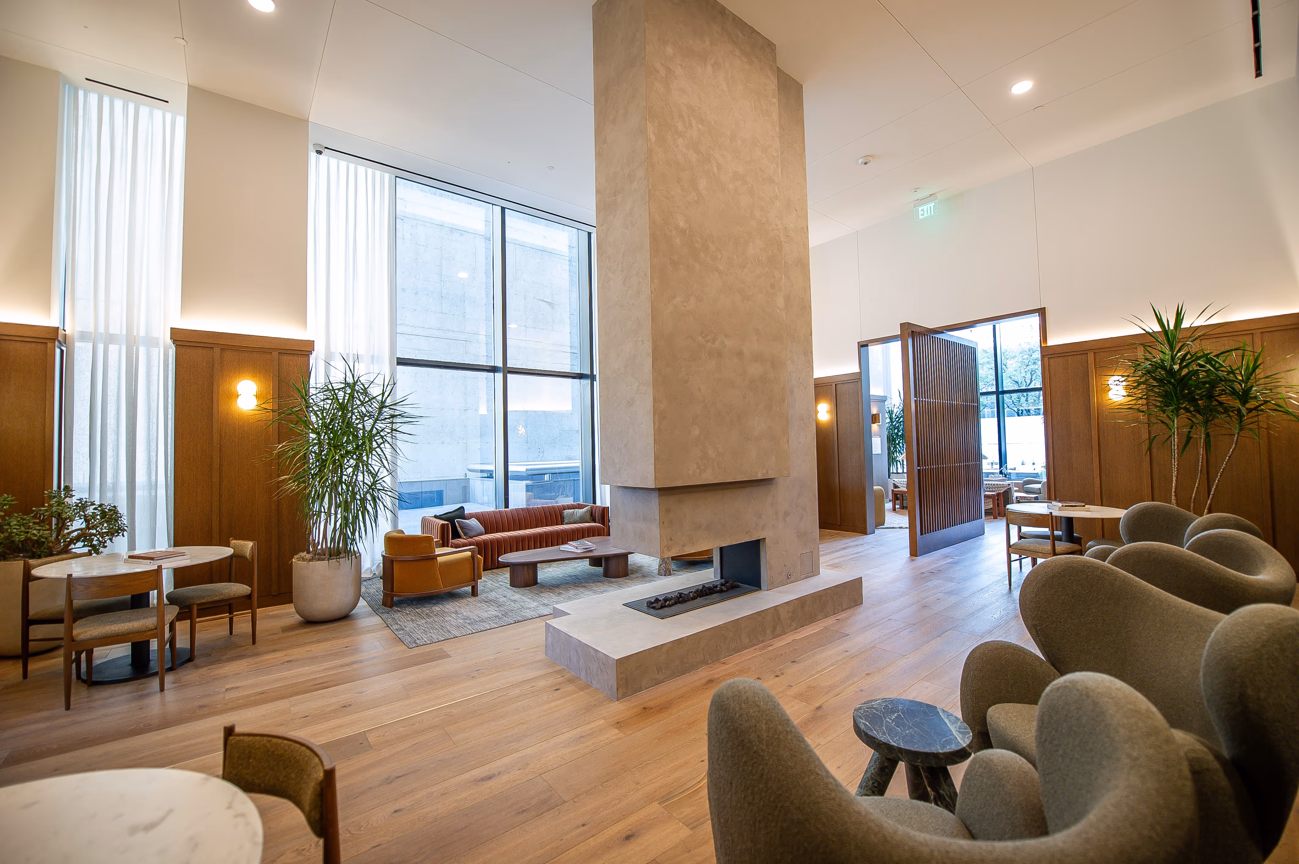 The Santander project reimagines a portion of an existing high rise through an extensive adaptive reuse renovation, converting 14 floors (Levels 18 to 25, 32 to 34, and 37 to 39) from office use into 291 residential apartment units. The updated design introduces a blend of modern living with dedicated amenity spaces and community areas that support comfort and connection among residents. Enhancements extend to Level 1, where construction includes the future leasing center, complete with a library, lounge, and retreat space. Additionally, the project delivers outdoor amenity areas atop the parking structure, featuring a dog park, private courtyard, outdoor kitchen, and pool, bringing elevated living to the heart of a revitalized urban environment.