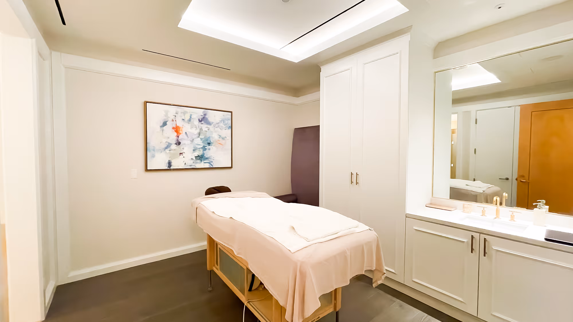 The Ritz-Carlton, located in the heart of Uptown Dallas, received renovations to their luxury spa amenities to create a sophisticated, modern environment for guests to relax and enjoy. The 12,000-sf spa, located on the second level of the hotel building, features new reception and retail area, hair and nail salon, men's and women's lounge and locker rooms, treatment rooms, corridors, and elevator lobby. Showcasing hand-painted murals and 10 specialty wallcoverings throughout, completing the high-end wall and ceiling finishes within the occupied hotel demonstrates our team’s unique ability to meet our client’s highest quality needs.